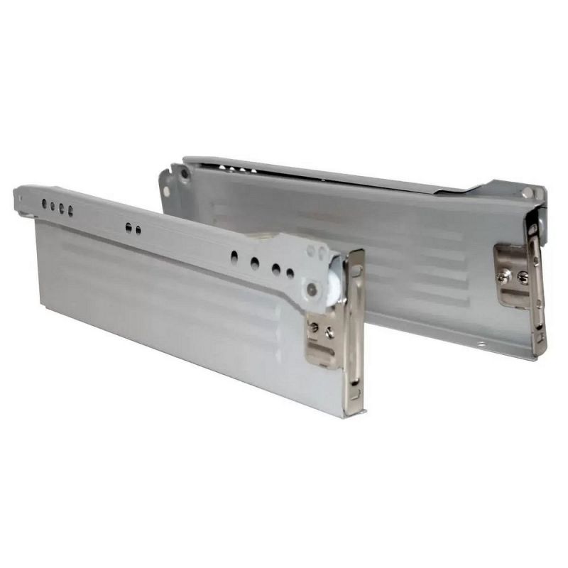 3. Комплект мебельной фурнитуры для изготовления ящиков состоит из правой и левой части плюс крепления к фасаду. Для увеличения высоты стенки ящика выберите другой метабокс или нужно дополнительно купить боковые рейлинги для метабоксов.