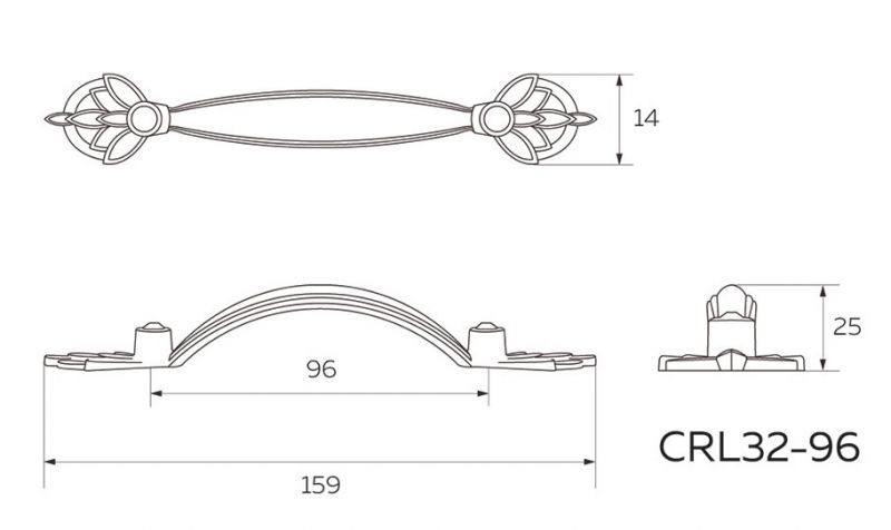 Чертёж. Мебельная ручка-скоба с кристаллами 96 черненый старинный цинк CRL32-96 BAZ.