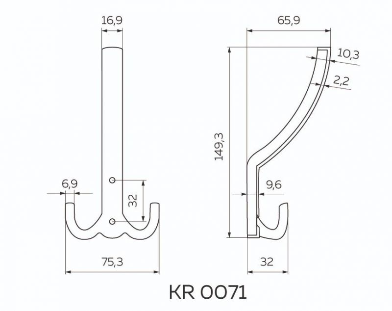 Крючок мебельный трехрожковый, хром KR-0071. Чертёж.