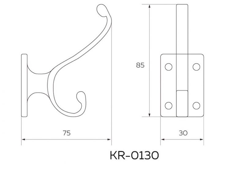 Чертёж - Вешалка крючок 2х-рожковый мебельный настенный KR-0130.