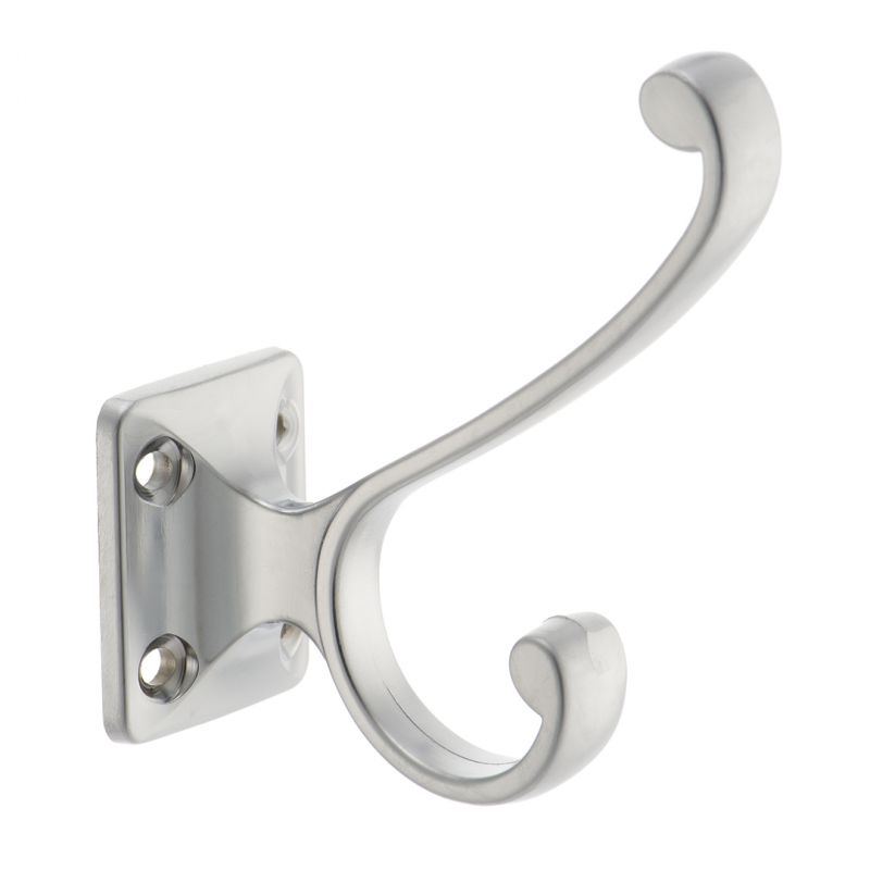 Фото: Крючок 2х-рожковый мебельный матовый хром KR-0130-SC.