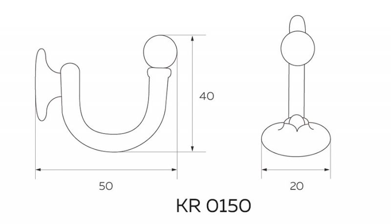 Чертёж. Крючок мебельный матовый хром KR-0150-SC.