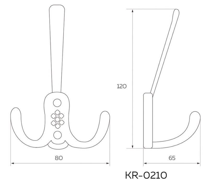 Крючок мебельный трехрожковый, атласная бронза KR-0210-MAB Чертёж.