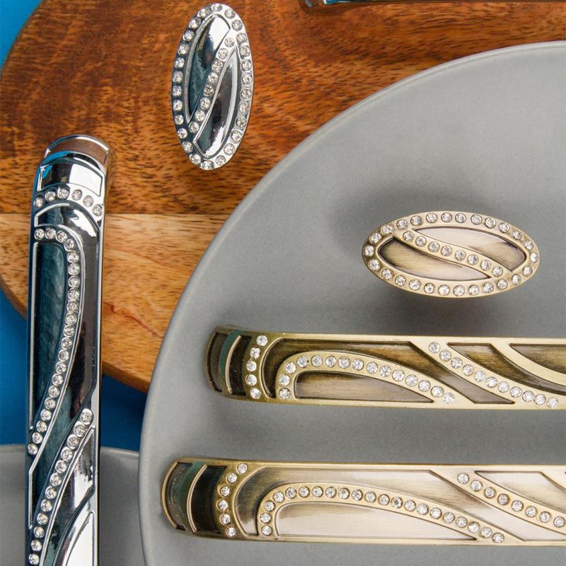 Ручка-скоба с кристаллами 96 мм, хром CRL19-96 - Фото.