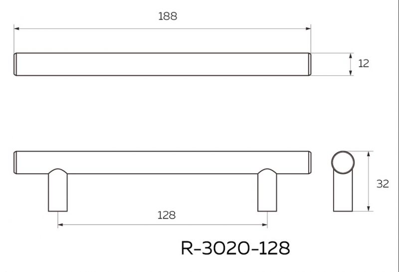 Чертёж - Мебельная Ручка-рейлинг 128, матовое золото R-3020-128-BSG.