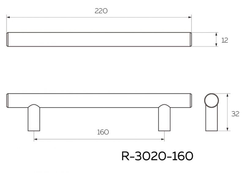 Чертёж. Мебельная Ручка-рейлинг 160, матовое золото R-3020-160-BSG.