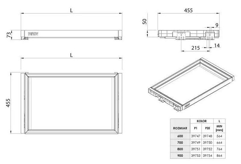 Чертёж: Полка выдвижная 600 мм антрацит R39748.