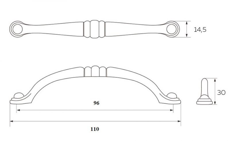 Чертёж - Ручка скоба мебельная 96 мм, чернёный старинный цинк RS-089-96 BAZ.