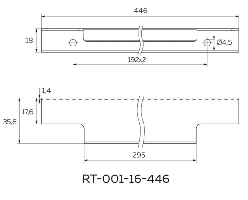 • Установочный размер между винтами 446 мм. Габаритный размер: 446х35.8х18 мм.