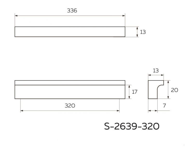 Чертёж: Ручка Г-образная 320 мм, матовое золото S-2639-320 BSG.